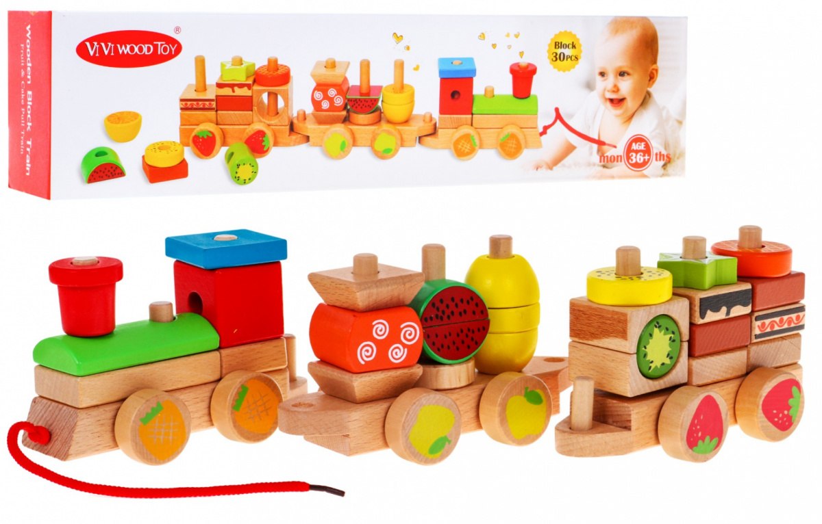 | | Drewniana lokomotywa to zabawka przeznaczona dla dzieci od trzeciego roku życia. Lokomotywa składa się z 30 elementów, każdy element wykonany zostały z drewna pomalowanego bezpiecznymi, nietoksycznymi farbami. Zabawa lokomotywą rozwija u dziecka wyobraźnię, motorykę i zdolności manualne. |