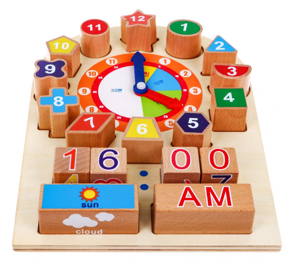 | Drewniany zegar to zabawka która pomoże Twojemu dziecku w łatwy i przyjemny sposób nauczyć się godzin, pór dnia, pogody oraz miesięcy. Zegar ma dwie ruchome wskazówki, które można dowolnie ustawiać i odczytywać zadany czas. Dodatkowo dzięki kostkom z numerami dziecko spróbuje od razu zapisywać czas. Może określić jaka jest teraz pora dnia, czy jest przed południem czy po południu oraz zdefiniować czy jest słonecznie, pochmurnie, czy pada deszcz lub śnieg. Klocuszki z numerkami, są różnych kształtów, należy je dopasować odpowiednio do wgłębień na planszy. Na klocuszkach znajdują się numery od 1 do 12 co symbolizuje pozy roku. Ten wspaniały zestaw zapewni twojemu dziecku niesamowitą zabawę a jednocześnie rozwinie motorykę, logiczne myślenie, wyobraźnię, cierpliwość, zmysł koncentracji i kreatywność. Zabawka wykonana została w całości z drewna, dzięki czemu jest wytrzymała i bezpieczna dla twojego dziecka. Zegar przeznaczony jest dla dzieci już od 12 miesiąca życia. | |