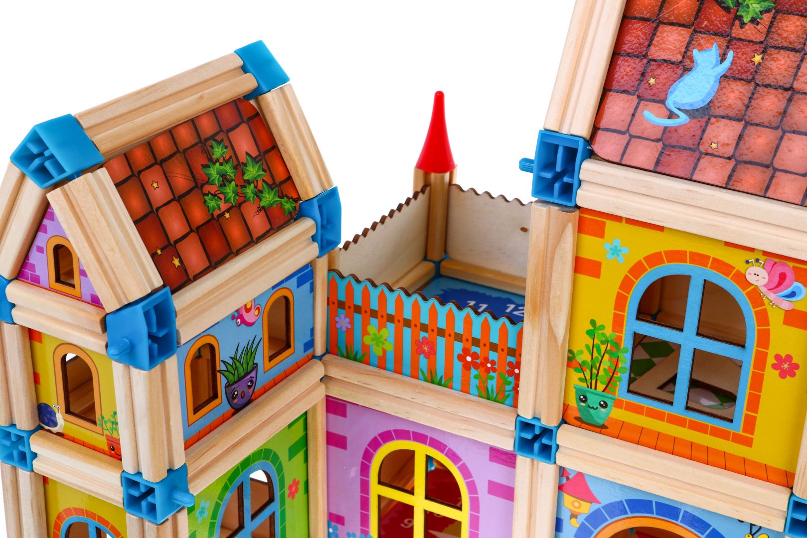 | | Zestaw drewnianych, kolorowych i bezpiecznych klocków dla dzieci od 3-go roku życia. Pakiet składa się z 268 elementów, które po ułożeniu tworzą kolorowe drewniane domki. Prócz elementów konstrukcyjnych w zestawie znaleźć możemy również klocki w kształcie drzewa, z postaciami czy autami, jest też obrazkowa instrukcja. |