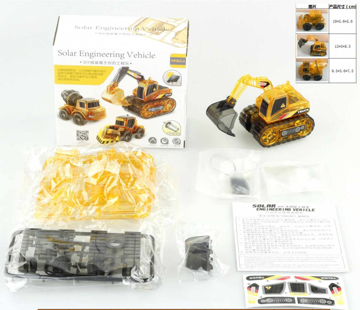| | - panel solarny, - części konstrukcyjne pojazdów, - instrukcja, - naklejki dekoracyjne. |