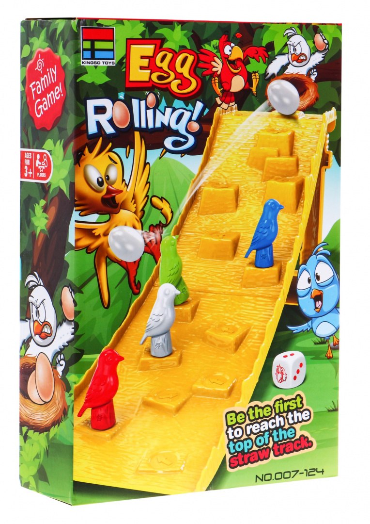| Zabawna gra zręcznościowa dla dzieci od 3-go roku życia. W grę może grać 2 do 4 graczy. Celem gry jest dostanie się na szczyt toru. Rzucamy kostką oznaczoną polami: 1 kropka, 2 kropki lub 3 kropki oraz trzema rysunkami ptaszka. Jeżeli wylosujemy pole z kropkami, przesuwamy naszą figurkę ptaszka o tyle pozycji w górę ile oczek jest na kostce. Ptaszek przesuwa się po balach słomy w kierunkach oznaczonych strzałkami. Jeżeli wylosujemy ptaszka możemy zdecydować czy chcemy przesunąć pionek w górę o jedno pole lub zrzucić jajko z góry. Jajko możemy położyć w jednym z trzech miejsc na górze toru. Jeżeli jajko zbije ptaszka przeciwnika, musi on rozpocząć grę od nowa. Musimy też uważać, żeby przez przypadek nie zbić swojego ptaszka. Wygrywa oczywiście ten, kto pierwszy dostanie się na górę. Życzymy udanej zabawy. | |