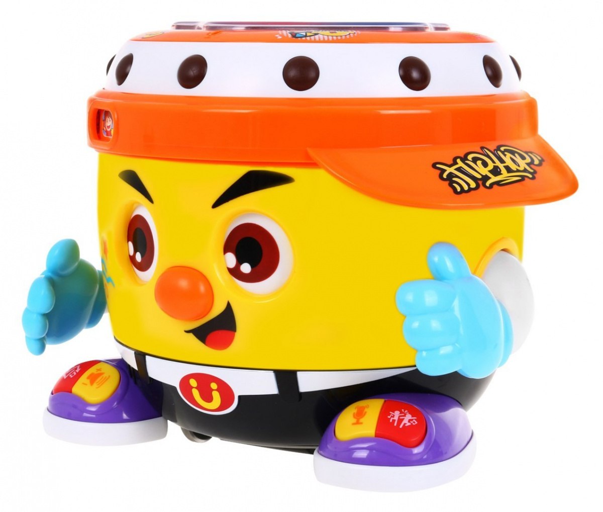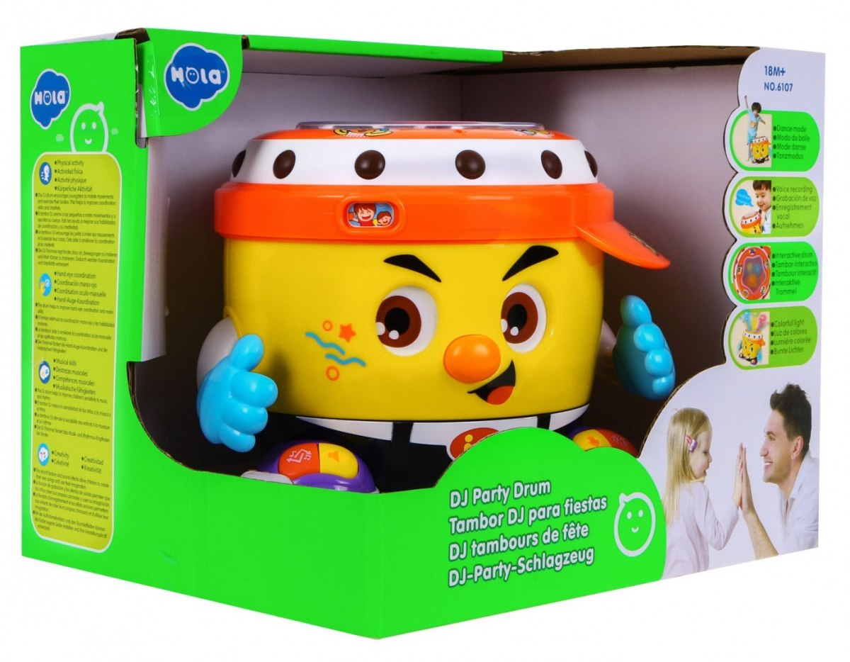 | Przedstawiamy Państwu niesamowity, wesoły, interaktywny bębenek dla dzieci już od 18 - go miesiąca życia. Bębenek zawiera bogaty zestaw melodii, dźwięków i efektów świetlnych. Podczas zabawy dziecko będzie rozwijać percepcję wzrokową, dźwiękową i dotykową. Dźwięki i melodie rozwijają wrażliwość muzyczną i doskonalą słuch. Funkcje zabawki: - regulator głośności, - wgrane, miłe dla ucha melodyjki, - migające światełka, - rytmy perkusji, - nagrywanie dźwięku, - możliwość zmiany trybów. Na spodzie zabawki znajduje się przełącznik, tryb 1 i tryb 2. W trybie 1 bębenek przesuwa się po podłożu jednocześnie ruszając nóżkami, rączkami, oczami. W trybie 2 bębenek pozostaje w miejscu, tańczy ruszając rączkami, nóżkami i oczkami. W górnej części bębenka znajduje się panel w który dziecko może uderzać a wydobywać będą się rytmy perkusji i migać światełka. Obrotowa czapka, po przekręceniu której słychać różne style muzyczne. Zabawka posiada funkcje nagrywania do czterech słów. Twoje dziecko może coś powiedzieć a bębenek zmieni słowa w piosenkę. Zabawka zasilana jest bateriami typu AA 5 x 1,5V - brak w zestawie. Zabawka bardzo starannie wykonana, żywe kolory, ucieszy każdego maluszka. Zabawka posiada certyfikat CE. | |