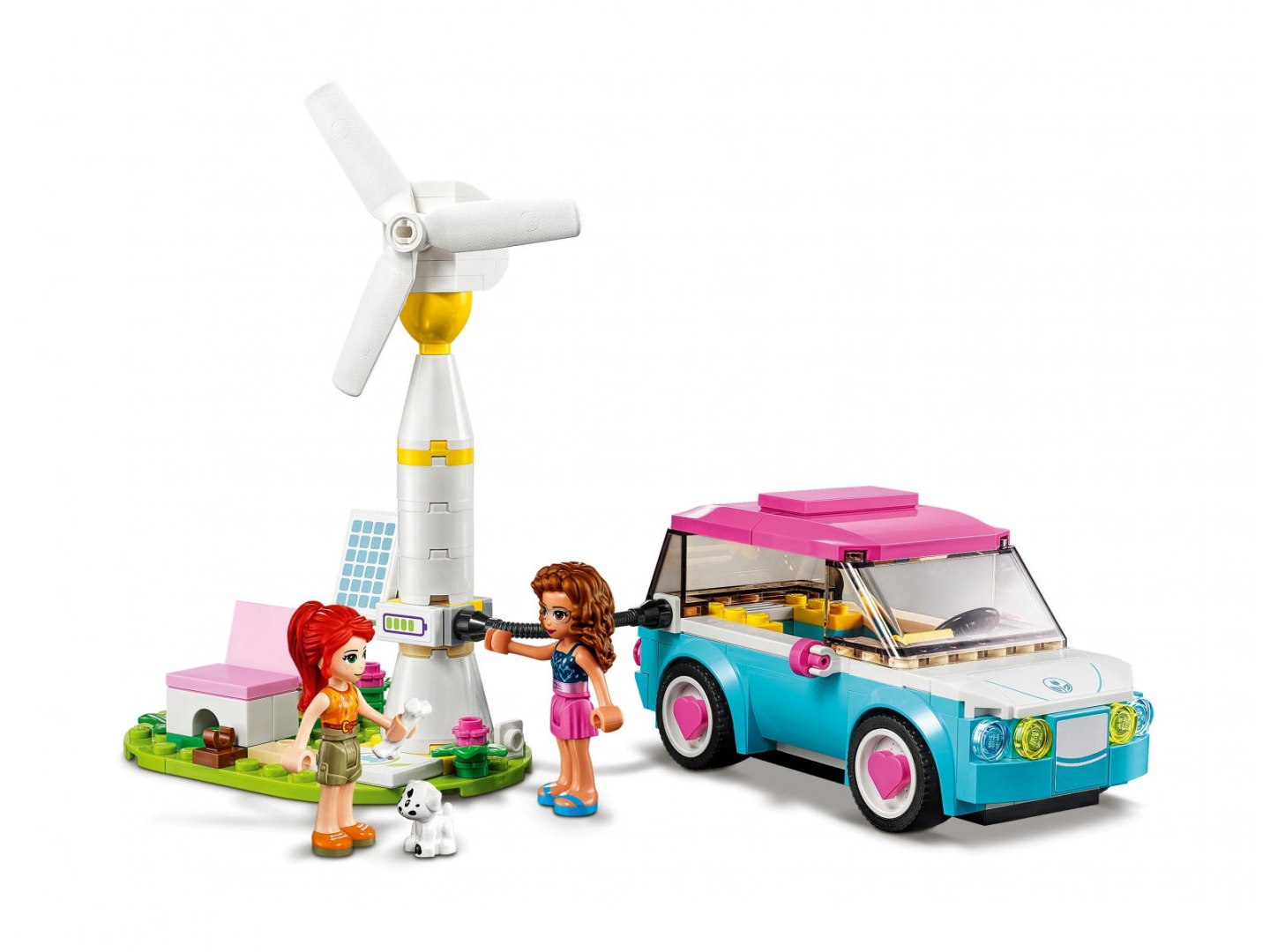 Zestaw LEGO® Friends Samochód elektryczny Olivii (41443) przypadnie do gustu wszystkim dzieciakom, które troszczą się o planetę. Pozwól im wyruszyć prosto przed siebie! Zestaw obiecuje wiele godzin przygód w podróży na niby i ucieszy dzieci, które interesują się pojazdami i chcą chronić środowisko. Zabawa w nowoczesnym stylu Kolorowe elektryczne autko ma miejsca dla minilaleczek Mii i Olivii, a na tylnym siedzeniu może podróżować szczeniak Elliot. W pudełku jest także model stacji ładowania, który również nawiązuje do ochrony środowiska — ma turbinę wiatrową i panel słoneczny. Teraz jazda samochodem nie musi oznaczać zatruwania powietrza spalinami! Zabawki z sercem Podaruj maluchom zestaw, który pozwoli im odkryć serię LEGO Friends i nauczyć się, jak uczynić świat czystszym miejscem, gdzie każdy troszczy się o innych. Zawiera on także znane postacie, z którymi łatwo się identyfikować. Można go też połączyć z dowolnymi klockami LEGO, więc dziecięca wyobraźnia wejdzie na wysokie obroty!