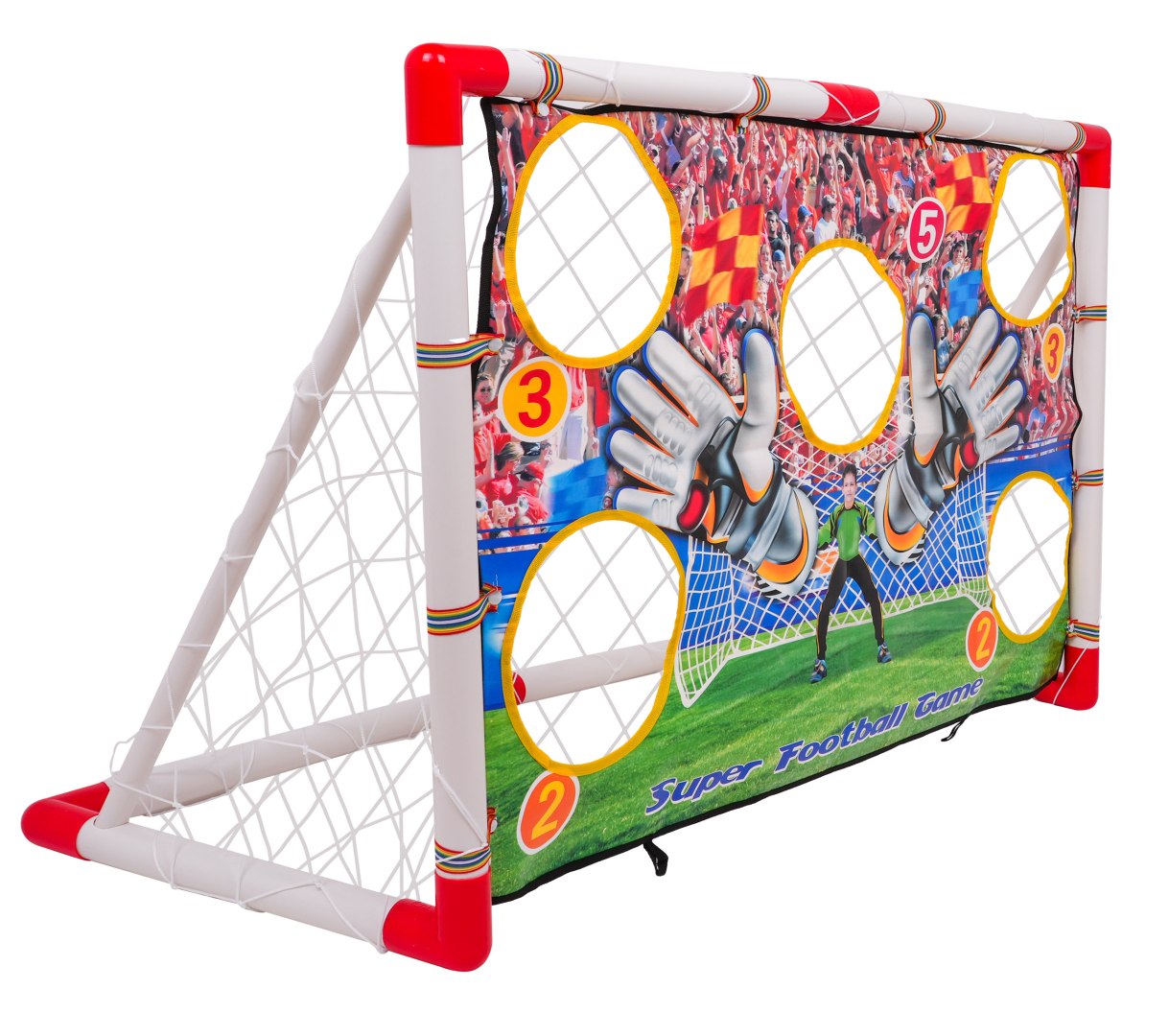 | - bramka 116 cm x 76 cm x 48 cm, - piłeczka o średnicy ok. 15 cm, - pompka ok. 20 cm x 6 cm x 4 cm, - haki do mocowania w podłożu ok. 14 cm x 5,5 cm x 2 cm, - opakowanie ok. 79 cm x 21,3 cm x 9,3 cm. | |