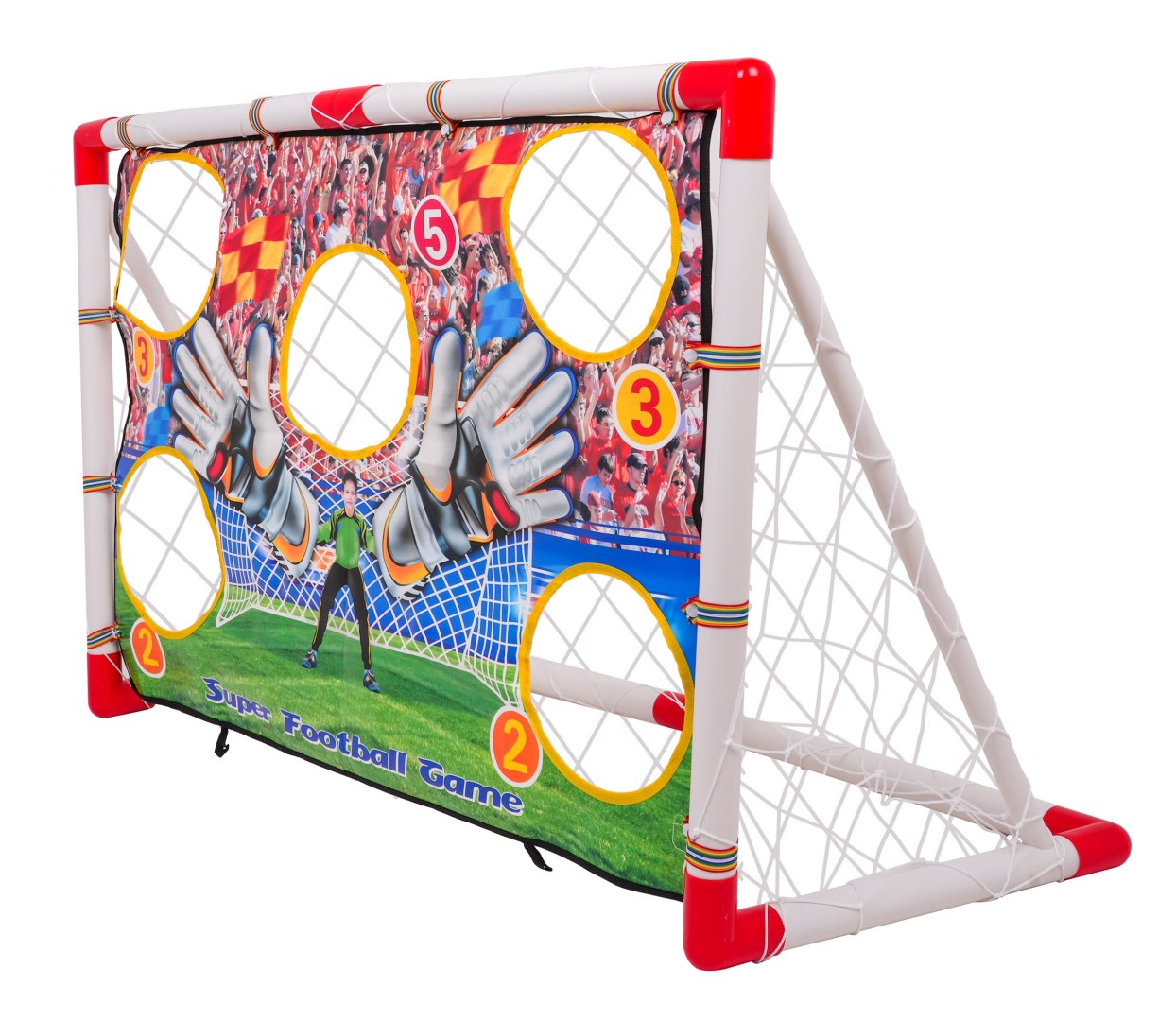 | Bramka z matą do ćwiczeń celności to propozycja dla dzieci od 3-go roku życia. Na macie znajdują się otwory oznaczone punktami, po trafieniu w dany otwór zawodnik otrzymuje przypisaną mu ilość punktów. Matę do nauki celności można w każdym momencie szybko zdjąć. | |
