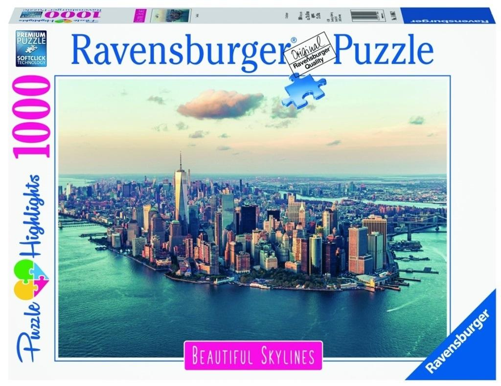Seria puzzli 1000 elementów Ravensburger przedstawia wyjątkowe panoramy znanych miejsc, w tym przypadku widok na Nowy Jork. Po ułożeniu puzzle mają wymiary 70 x 50 cm.
